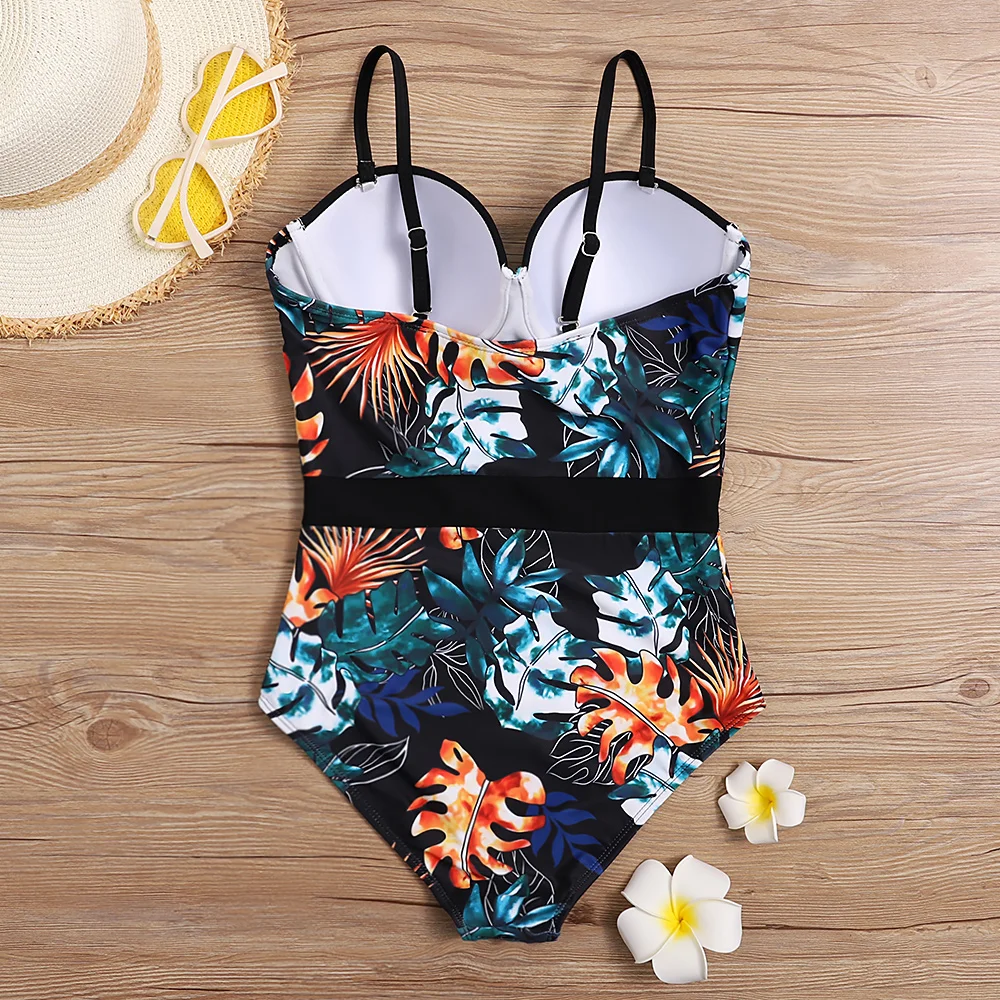 Летний новый цветочный сексуальный цельный купальник большого размера пуш-ап женский купальник размера плюс закрытый женский купальный костюм Пляжная одежда для бассейна 2021