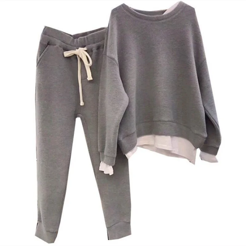 Женский свободный свитер с двумя бумажными вставками, комплект из двух предметов, женский костюм, повседневный спортивный костюм, худи и пот, уличная одежда