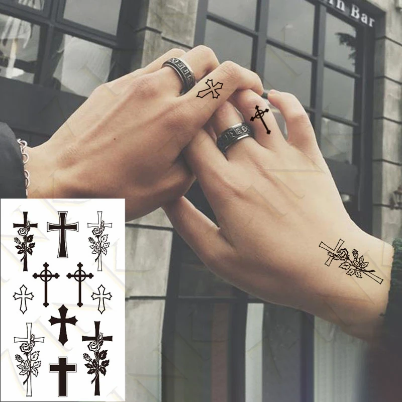 Водостойкая временная татуировка наклейка черно-белая перекрестная ...