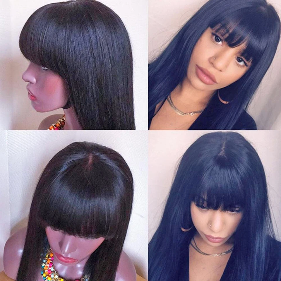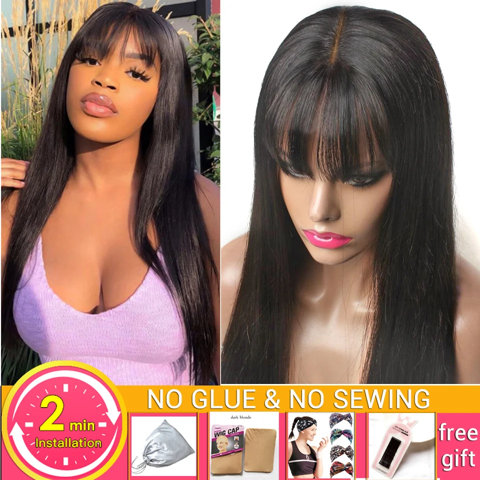 Недорогой парик ONETIDE из прямых человеческих волос с челкой, искусственный парик из кожи головы, парик на шелковой основе, парик из бразильских человеческих волос для чернокожих женщин