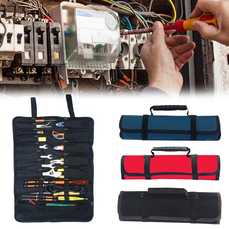 Многофункциональные сумки для инструментов, практичные ручки для переноски, роликовые сумки, оксфордское полотно, долото, набор инструментов для электрика, чехол для инструмента