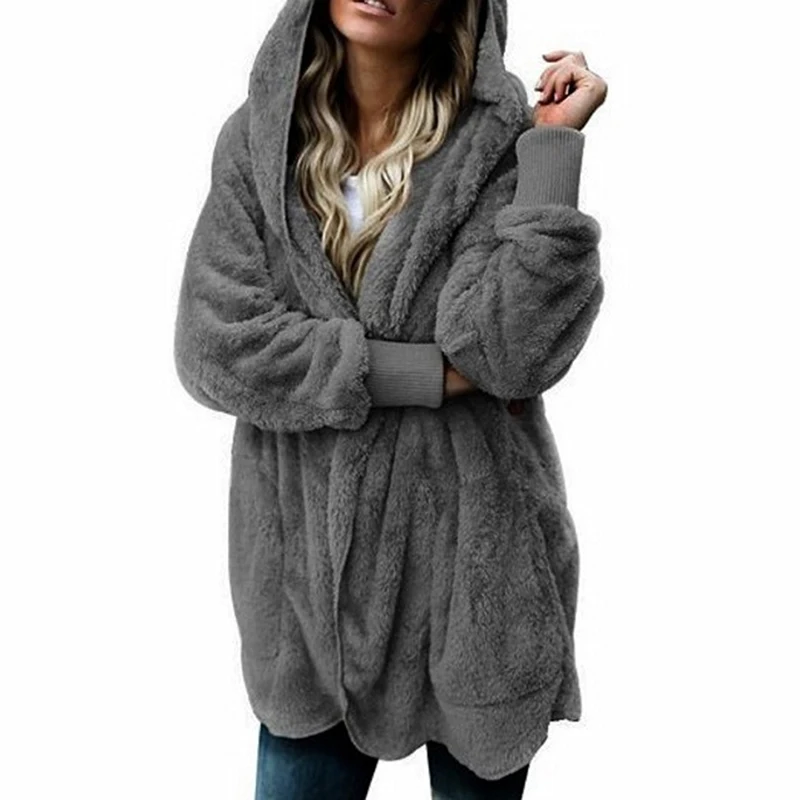 S-2XL большой Размеры зимнее пальто женские меховые куртки-кардиганы с длинными рукавами и по бокам с обеих сторон носить из искусственного меха пальто Teddy Bear пальто