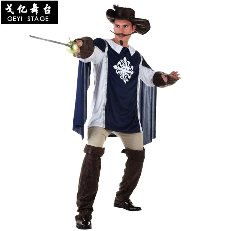 Пижама для детей и взрослых, три синих костюм мушкетёр греко-римские рыцарь-воин костюмы для мальчиков на Хэллоуин, карнавал Марди Гра нарядное платье