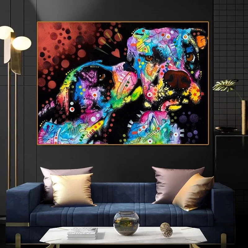 Современная Художественная живопись, цветные животные, собака, холст, живопись, живопись, постеры и принты для дома, гостиной, настенное украшение, живопись