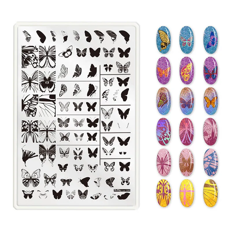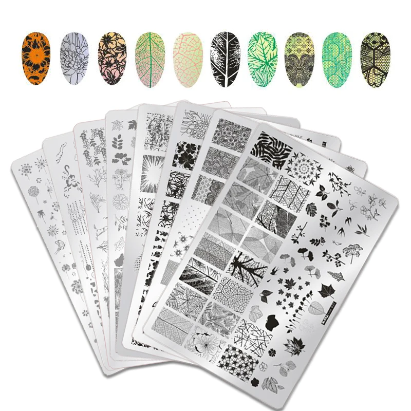 Большие прямоугольные пластины для стемпинга ногтей весенний цветок бабочка штамп для дизайна ногтей трафареты штамп из нержавеющей стали маникюрный шаблон инструменты