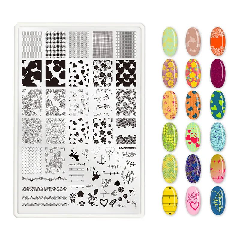 Большой прямоугольник ногтей штамповки пластины Весна цветок бабочка дизайн ногтей штамп трафареты Нержавеющая Сталь Штамп маникюрный шаблон инструменты