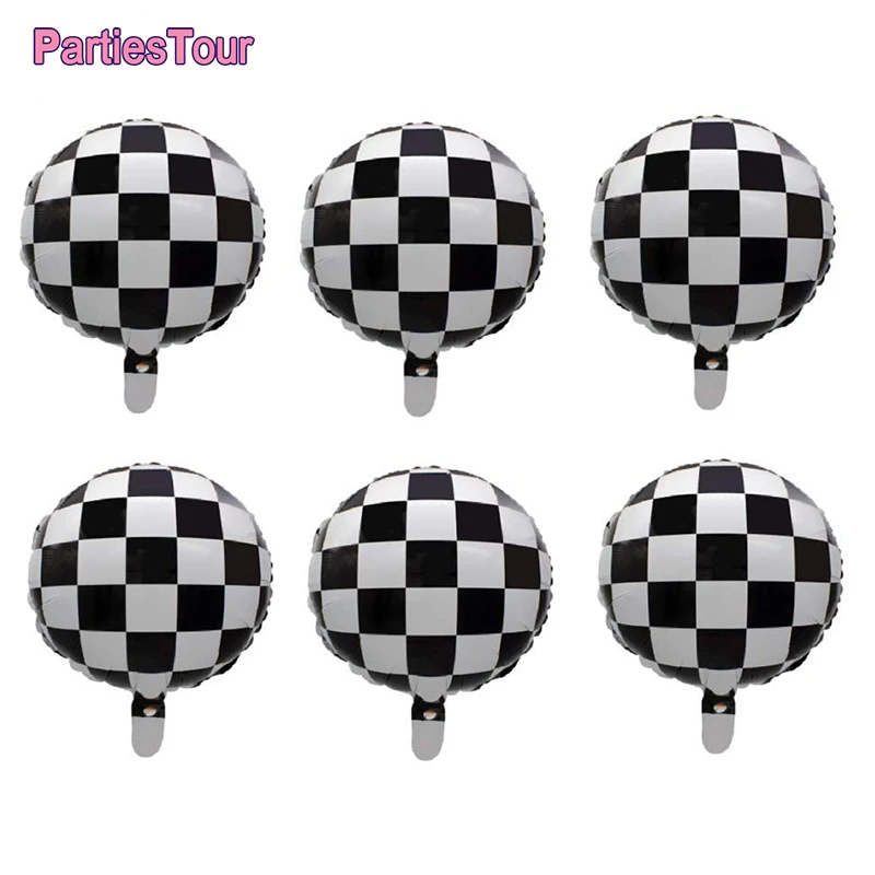 6 шт. 18 дюймов черный, Белый Цвет гоночный автомобиль Фольга воздушные шары спортивных мероприятий круглый баллоны с гелием на день рождения клетчатая гоночная тема вечерние Faovor