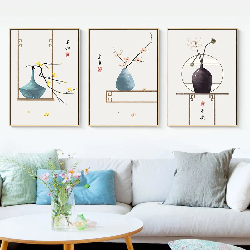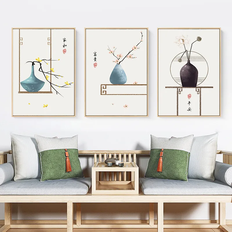 Плакат в традиционном китайском стиле, ваза с цветами, Настенная картина на холсте, Минималистичная печать, настенные картины для гостиной, домашний декор icon star icon star icon star icon star icon star