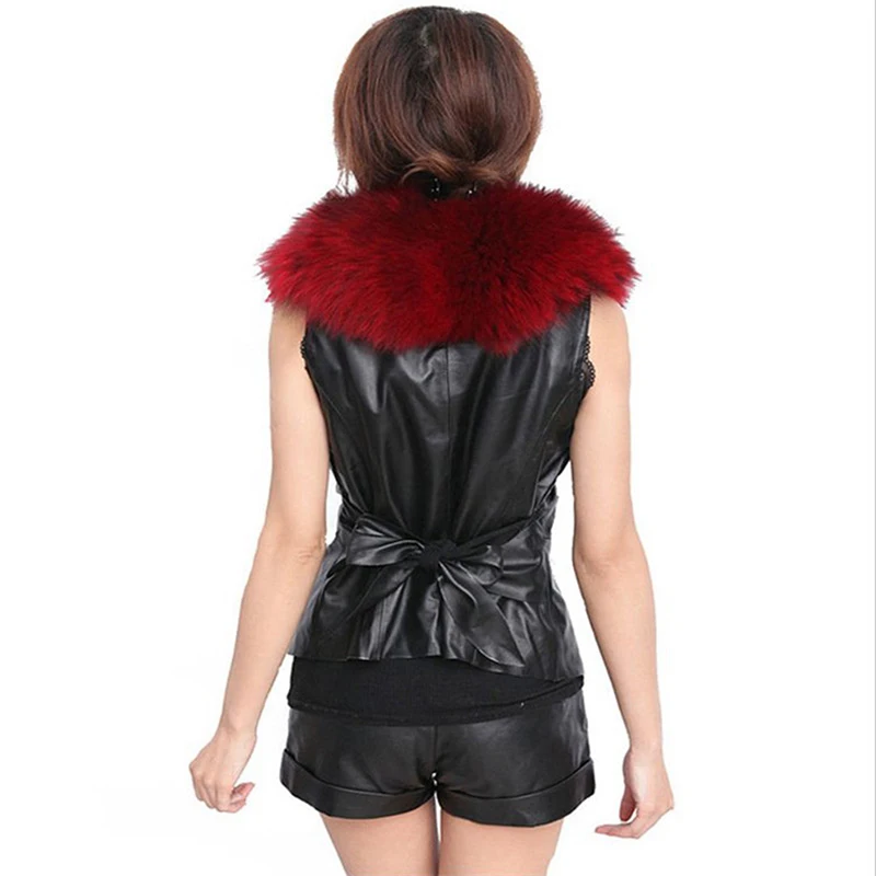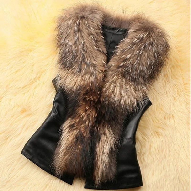 Женское пальто из искусственной кожи с искусственным мехом 2020 повседневное пальто размера плюс без рукавов с воротником из искусственного лисьего меха зимняя куртка Женское пальто 3XL