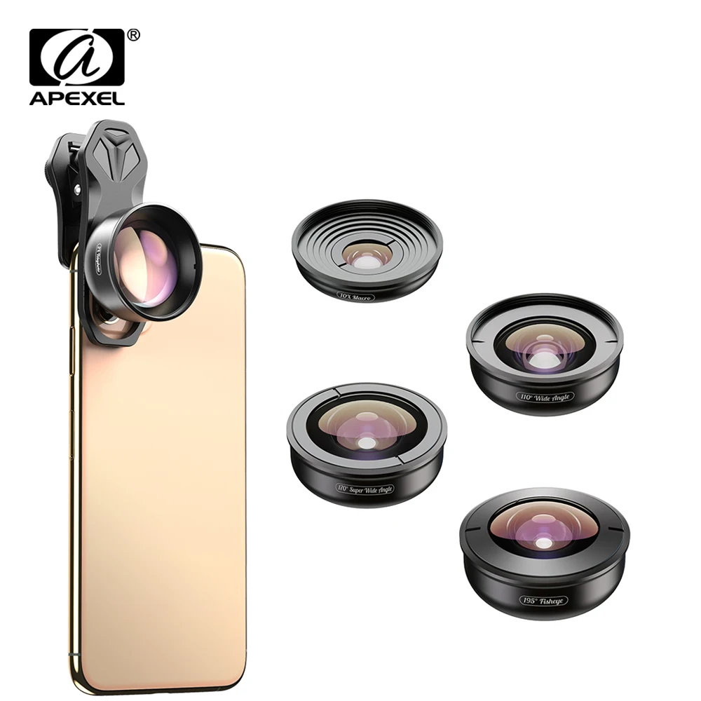 Оптический Объектив APEXEL для камеры телефона 5 в 1, широкоугольный объектив рыбий глаз для макросъемки 4K, супер широкоугольный объектив для iPhonex, xiaomi, allsmartphone