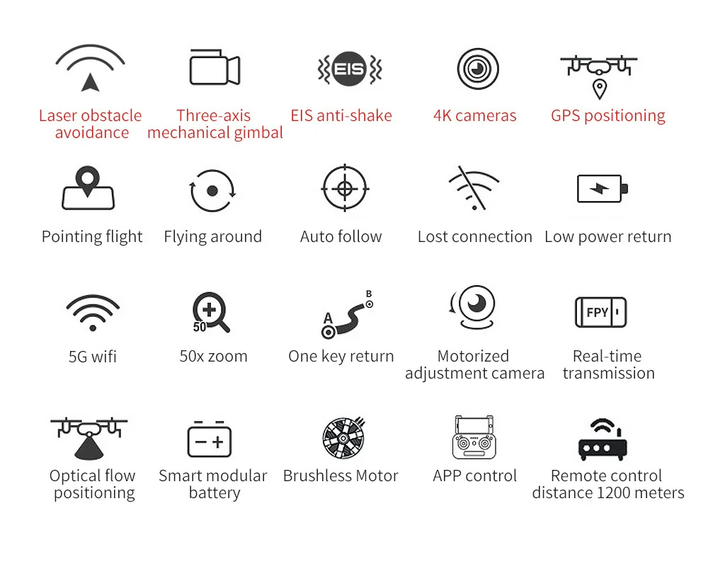 Срок службы: SG906 PRO: 7,4 в 2800 мАч батарея около 25 мин/SG906 PRO 2: 7,6 В 3400 мАчОколо 26 мин