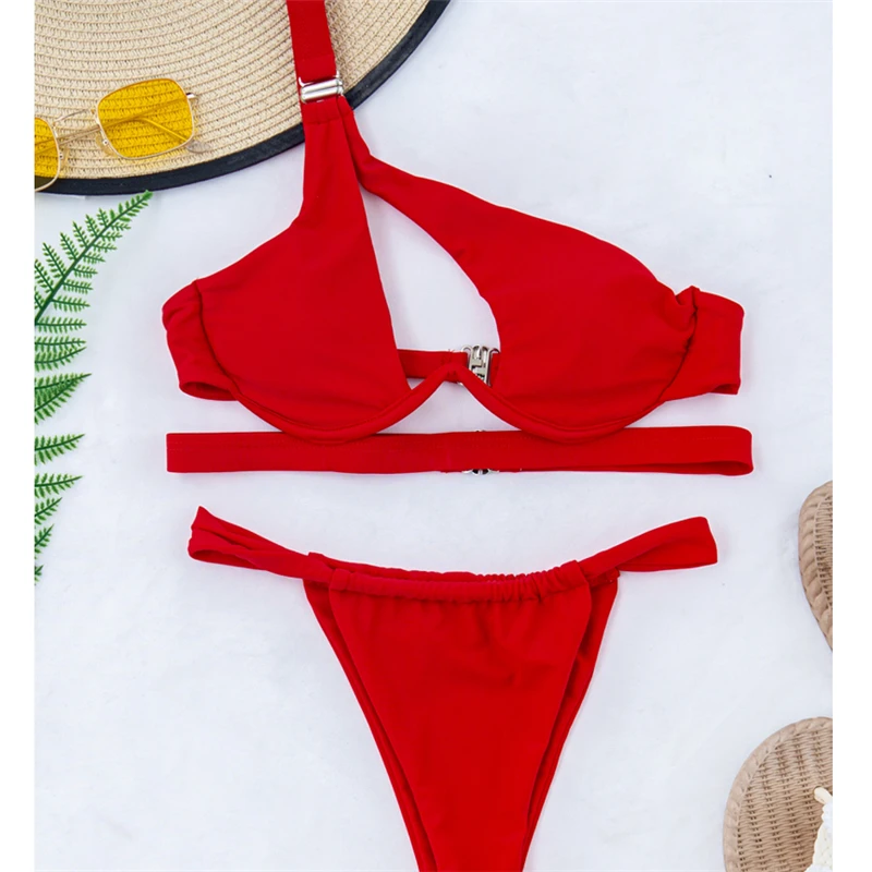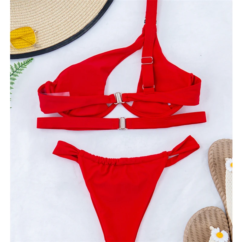 Женский купальник с вырезами GNIM, бикини с пуш-ап, однотонный купальник на одно плечо, стринги, женский микро-купальник, 2021