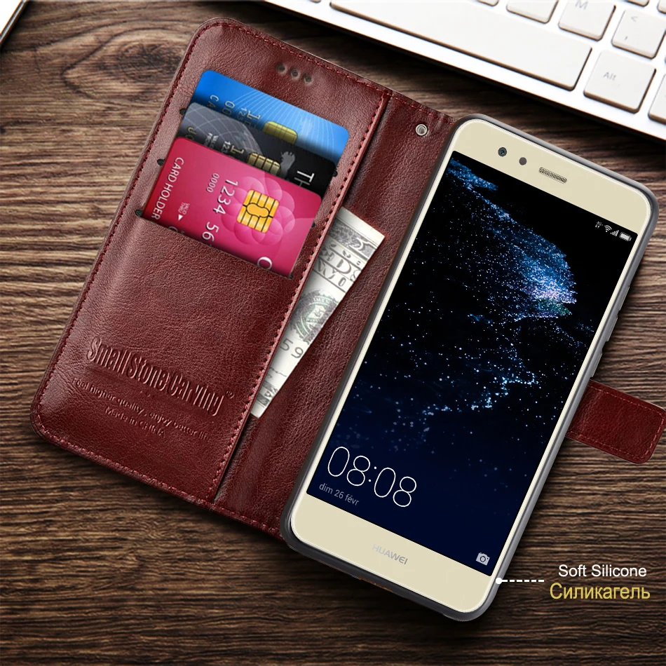 Чехол-книжка для Huawei P10 lite, кожаный, с отделением для карт