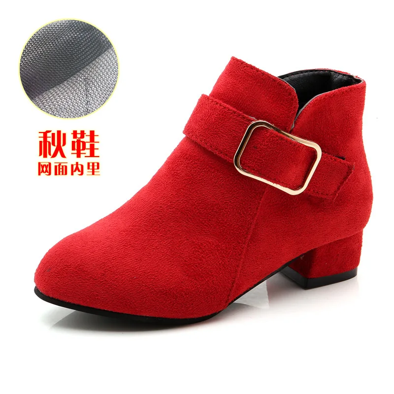 Сапоги для детей на высоком каблуке, обувь для девочек, теплые зимние осенние красные ботильоны, кроссовки из замши 2020 3 4 5 6 7 8 9 10 11 12 лет