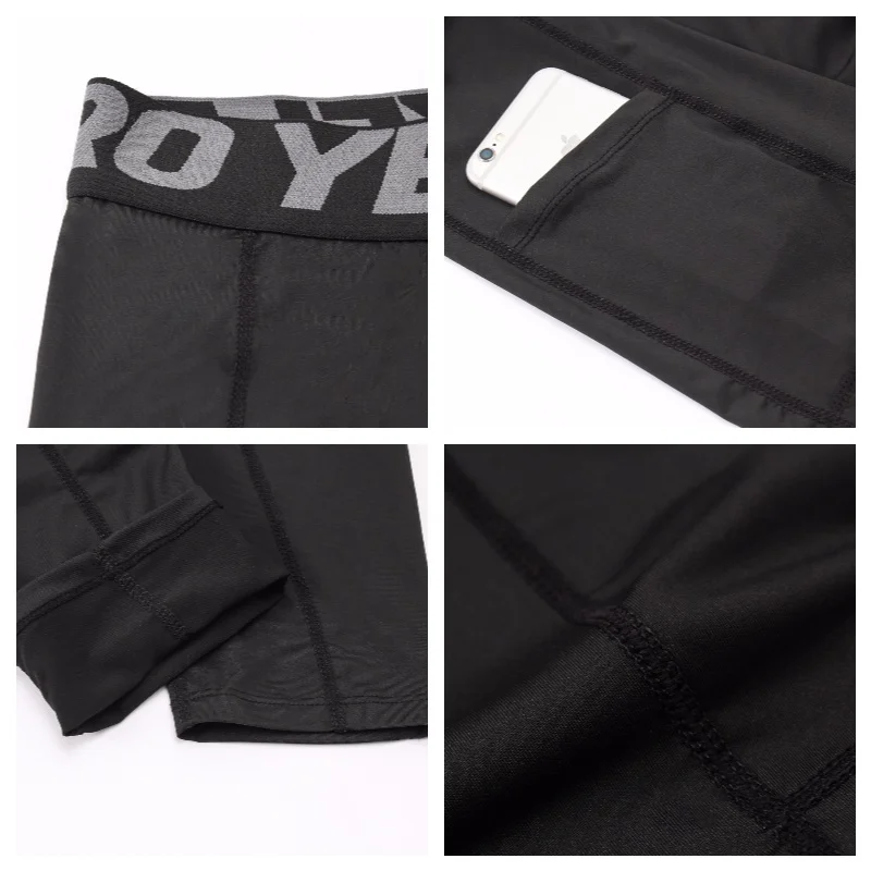 Леггинсы мужские компрессионные, черные, с карманом для телефона