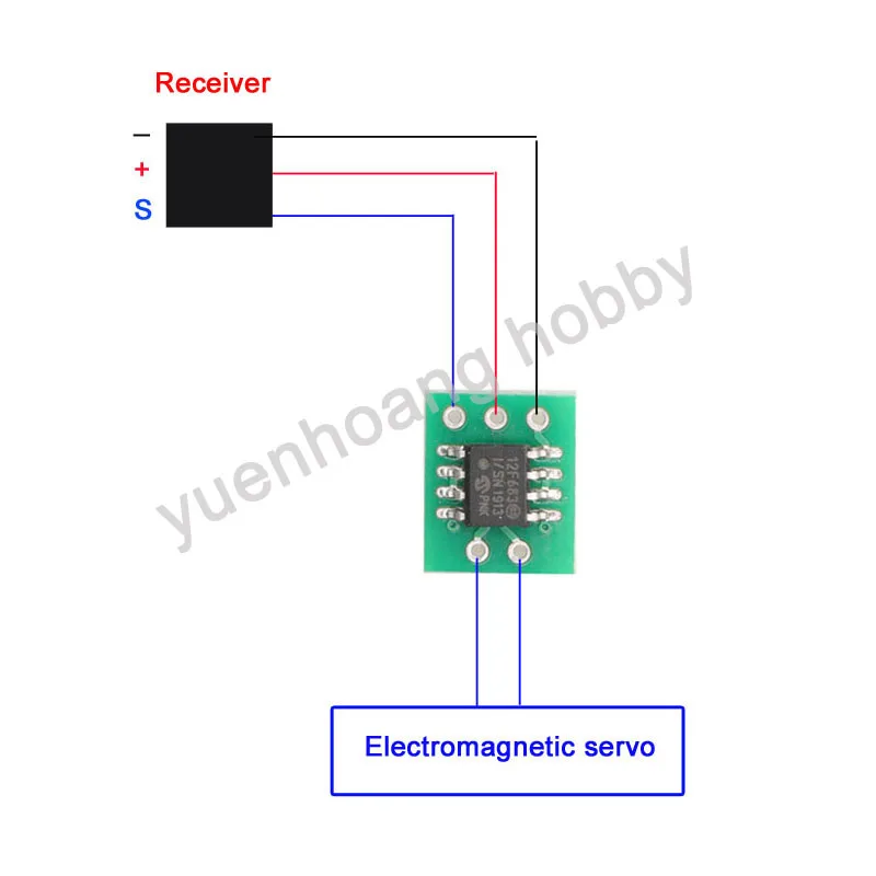 -Обычная модель приемника самолета преобразуется в цепь, которая непосредственно приводит в действие электромагнитный сервопривод