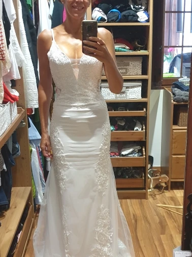 В восторге от платья идеально, мне нравится, что оно немного широкое в декольте, но я возьму его, чтобы отрегулировать и готово, спасибо, это будет очень особенный день для меня, и он дополнит это красивое платье
