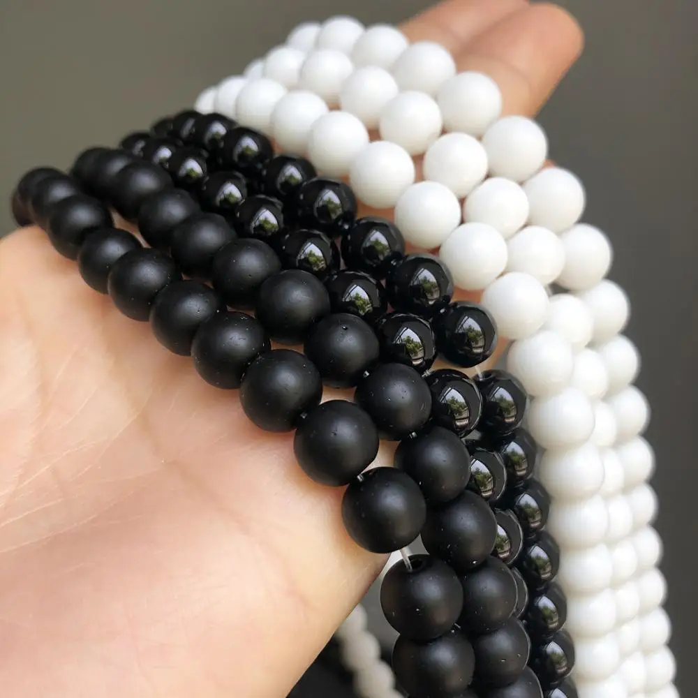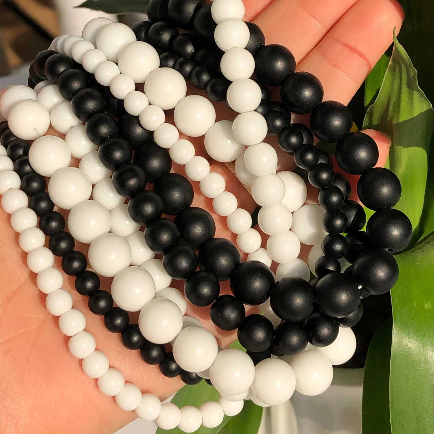 Натуральный Камень Белый Черный тусклый Лак Матовый оникс Агаты круглые бусины разделитель для самостоятельного изготовления ювелирных изделий браслет нитка 15 "46812 мм