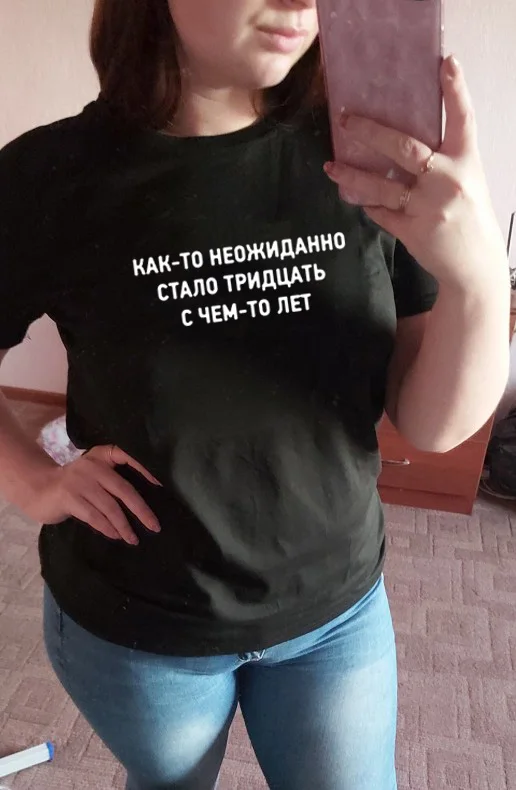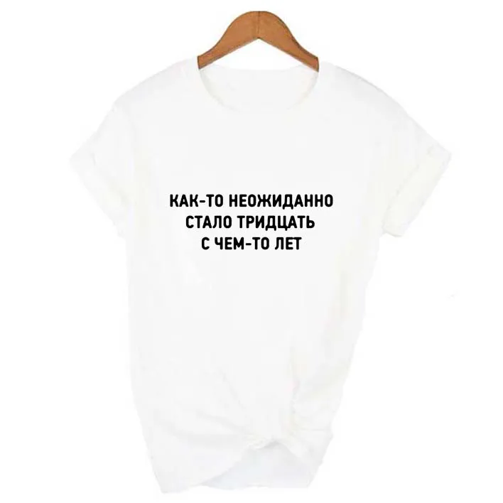 Как-то неожиданно это стало тридцать лет русская надпись футболка Повседневная Женская футболка с круглым вырезом