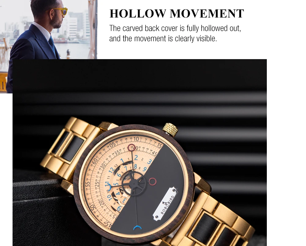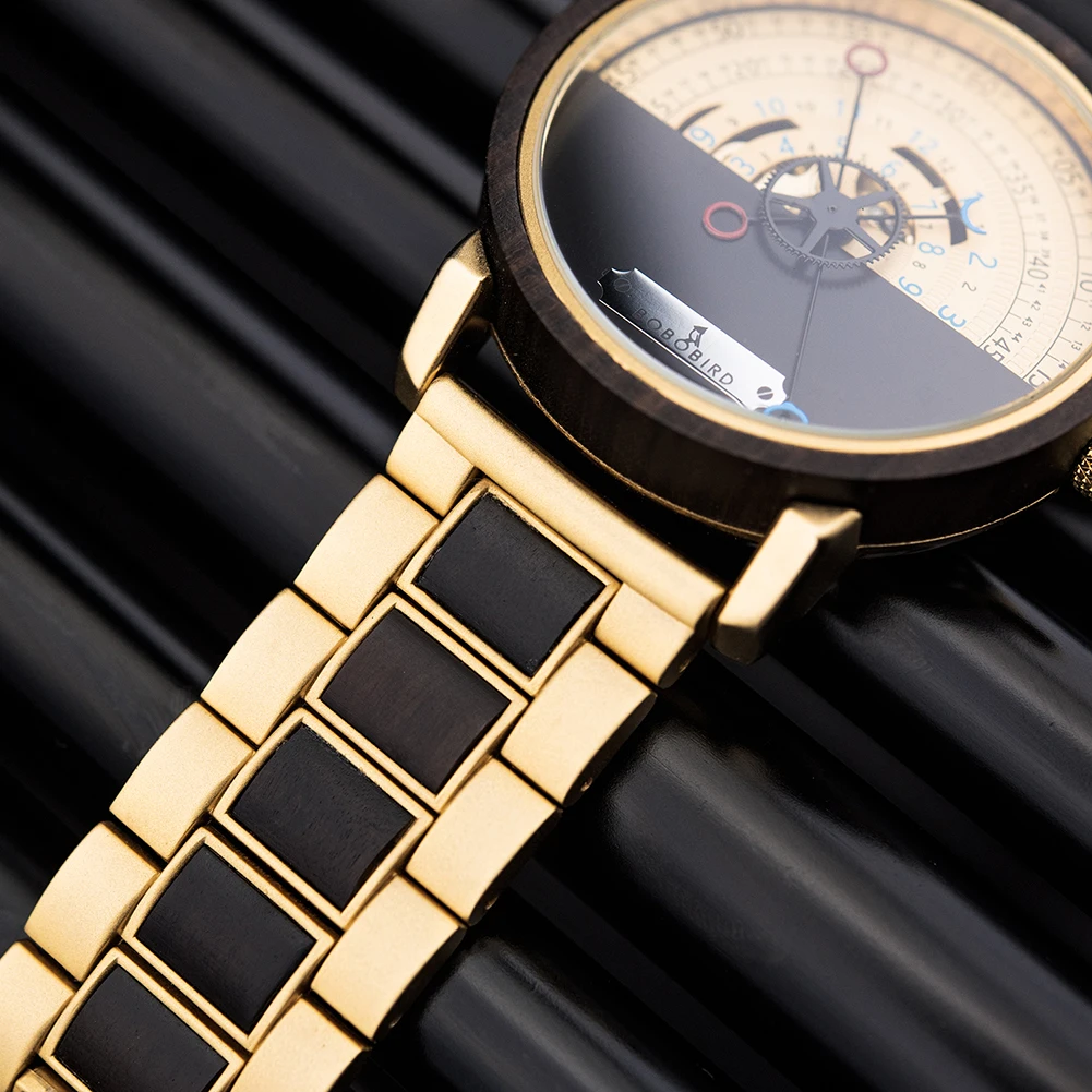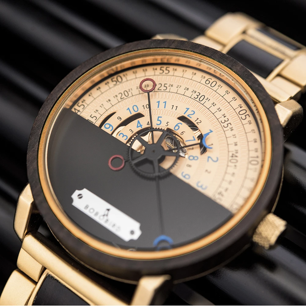 Часы наручные BOBO BIRD Мужские автоматические, спортивные механические деловые с деревянным браслетом из нержавеющей стали, 2021