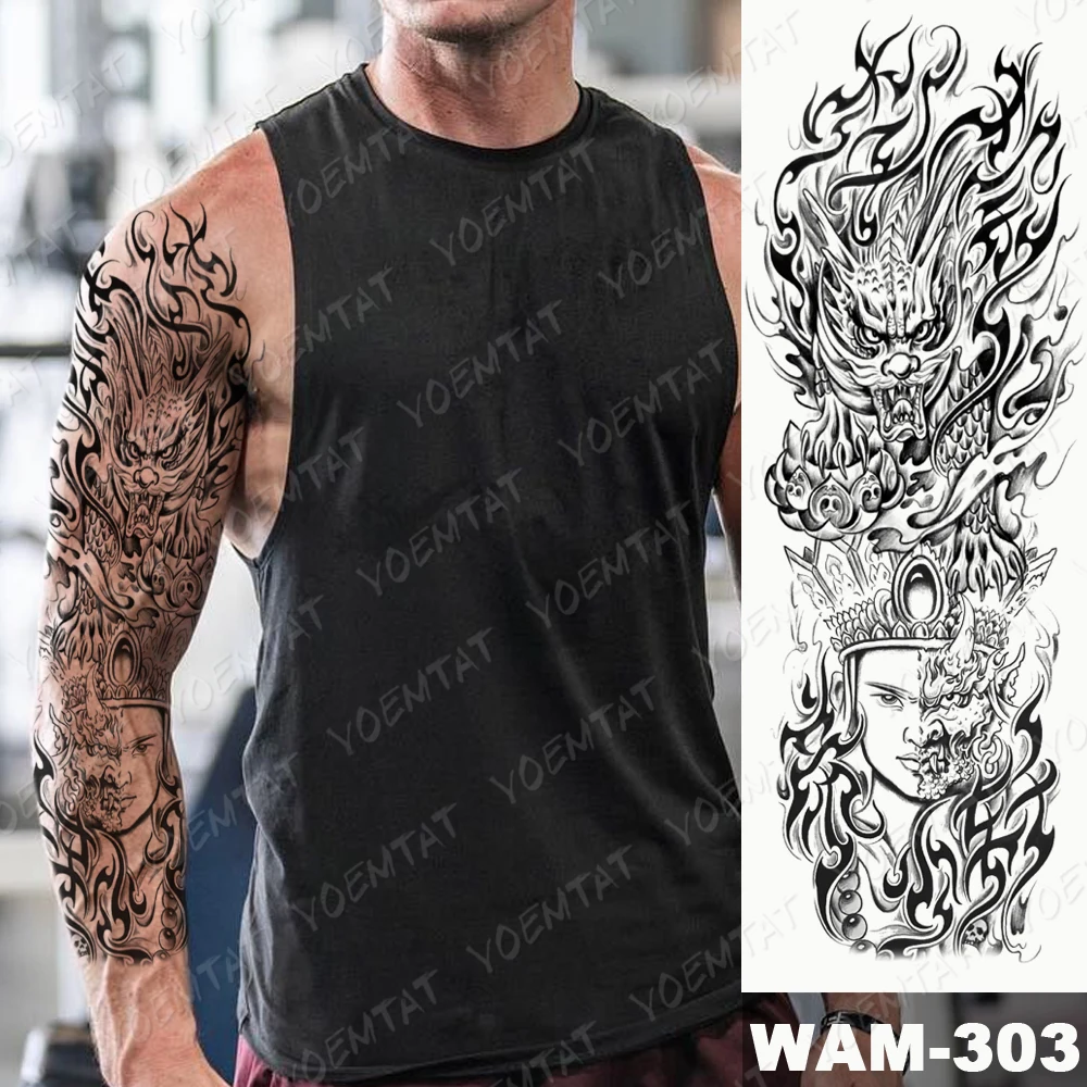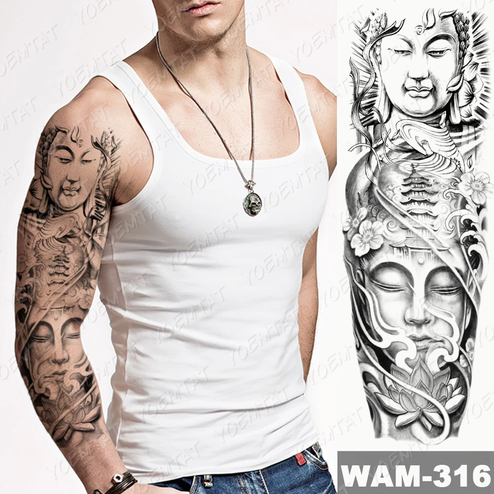 Большой татуировки рукава Будды Шакьямуни пагода Водонепроницаемый временная татуировка Стикеры демоническим Праджня для боди-арта Полный Поддельные татуировки Для мужчин