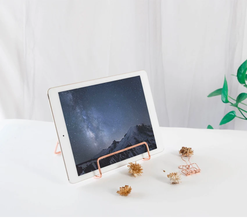 Стенд для дисплея из кованого железа, планшетов, настольных компьютеров, органайзер для чтения, стеллаж для хранения, декоративные настольные аксессуары, золоторозовое золото