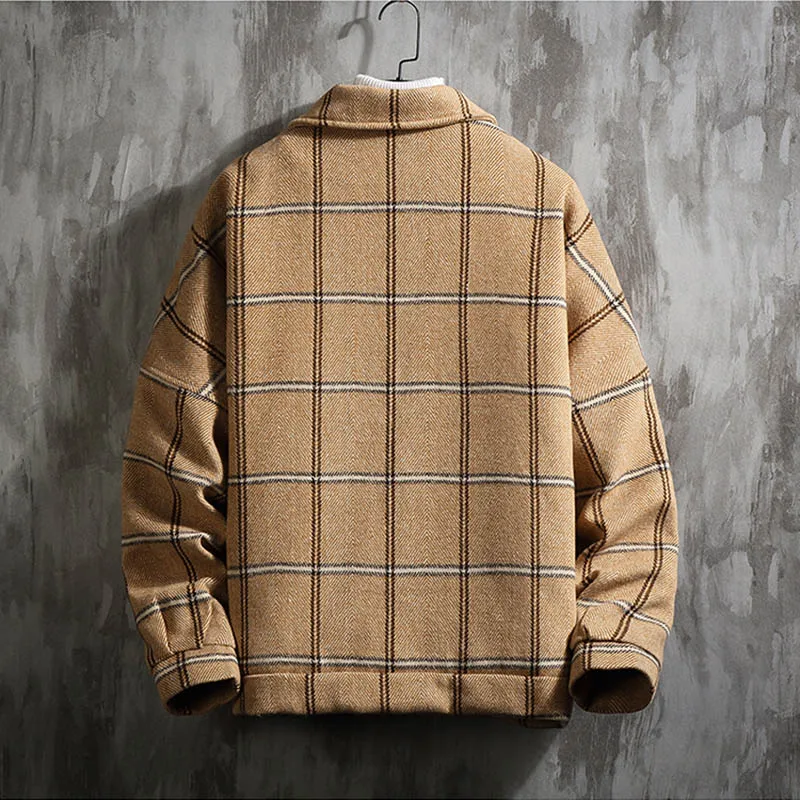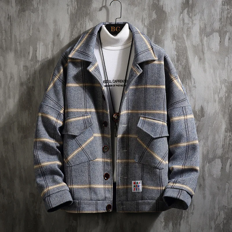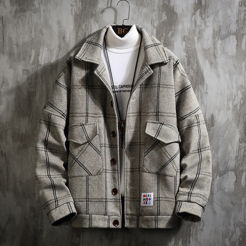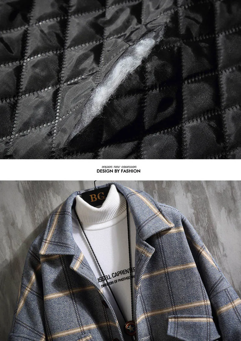 Новинка, модная Зимняя шерстяная клетчатая куртка, мужское шерстяное пальто, повседневное приталенное шерстяное пальто с отложным воротником, мужской тренчкот