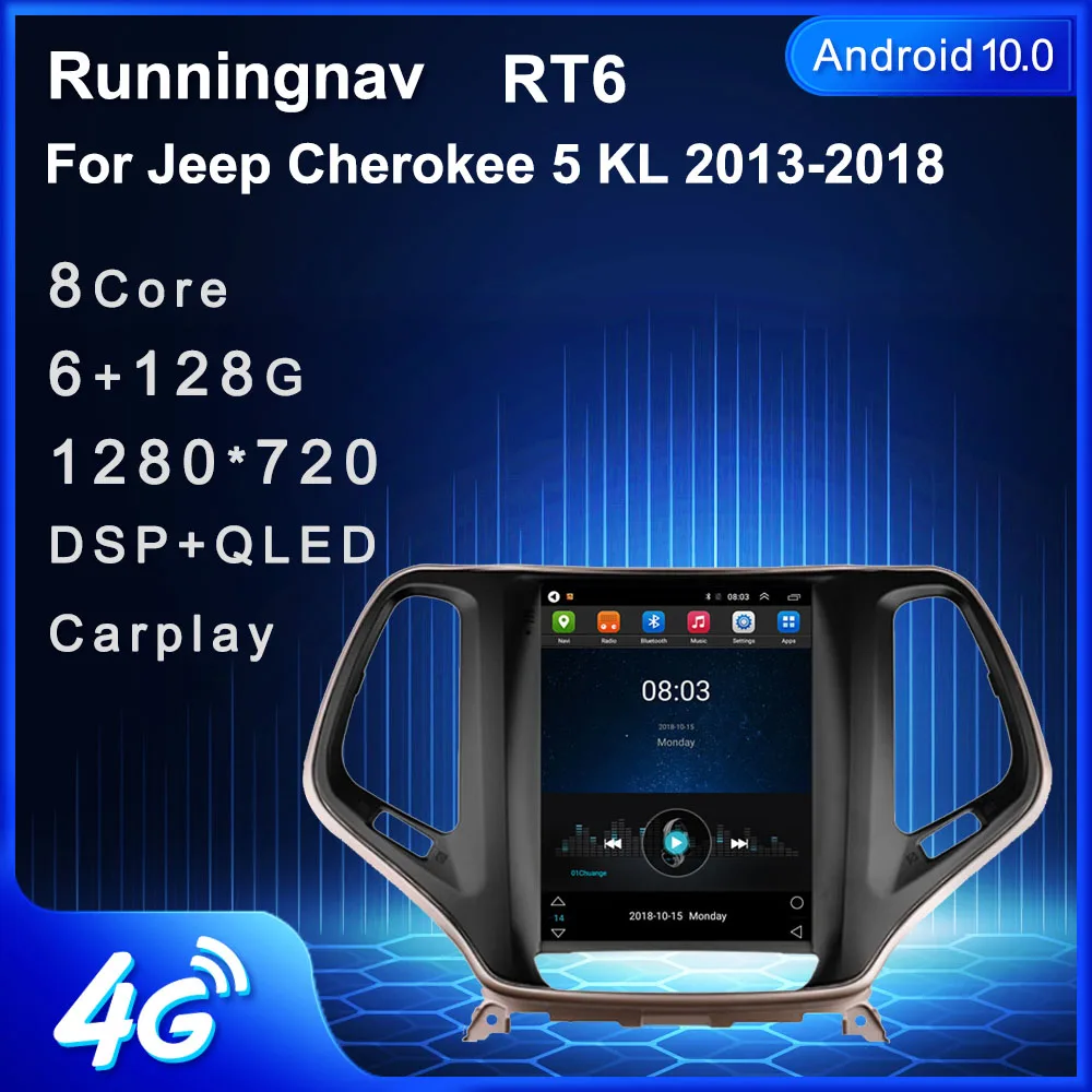 Автомобильный мультимедийный проигрыватель, мультимедийная стерео система с GPS-навигацией, 4G LTE, Android 10, для Jeep Cherokee 5 KL 2013-2018, Типоразмер Tesla