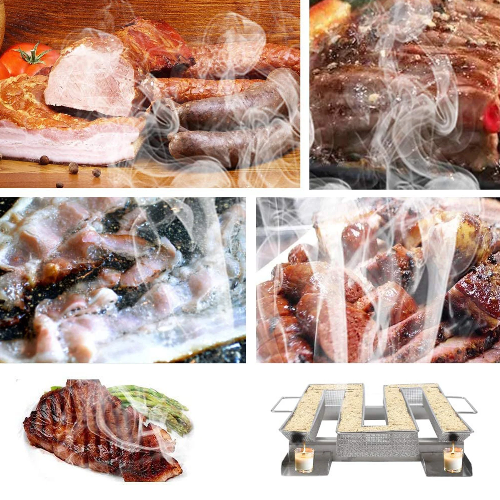 1. Легко чистить: генератор дыма может быть сожжен с обеих сторон. Размер Копченый прессовый агрегат для удаления древесной стружки должен быть 0,5 мм/0.2in-1,0 мм/0.04in, и держите его в сухом состоянии. После сжигания просто k nock из пепла и используйте проволочную щетку для удаления последнего остатка. 2. Безопасный в использовании: дымовой генератор оснащен высококачественной изогнутой сеткой, прост в использовании и не имеет острых краев. Поднятый генератор холодного дыма поддерживает лучшую циркуляцию воздуха. Увеличьте точки сварки для улучшения стабильности и уменьшения зазоров. 3. Универсальный генератор курильщика: этот генератор курильщика подходит для всех видов грилей и курильщиков. Например, вы можете подключить его к вашему газовому или угольному грилю, Курильщику, Курильщику, улитку, решетку для гриля, крючок для курильщика, печь для курильщика в качестве аксессуара для курильщика. Компактная конструкция может использоваться практически в любом месте. 4. Идеально подходит для барбекю: Идеально подходит для холодного курения, особенно для ветчины, бекона, многолетней колбасы, сырой колбасы, копченого лосося или копченого мяса. Этот курильщик поможет сделать ваше мясо на гриле более вкусным. 5. Несколько целей: подходит для рыбаков, гурманов, охотников, поваров и поваров для барбекю, ежедневного использования и т. д.