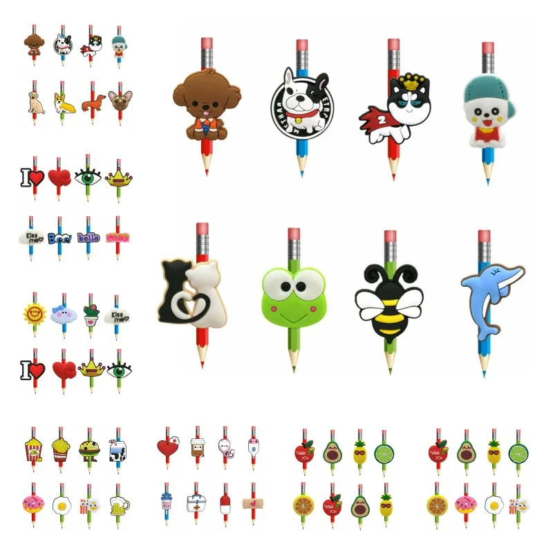 8 шт. Симпатичные животные ПВХ колпачки для карандашей крышка кошка лягушка соломенный Топпер Канцтовары для студентов DIY стетоскоп очаровательный подарок для детей