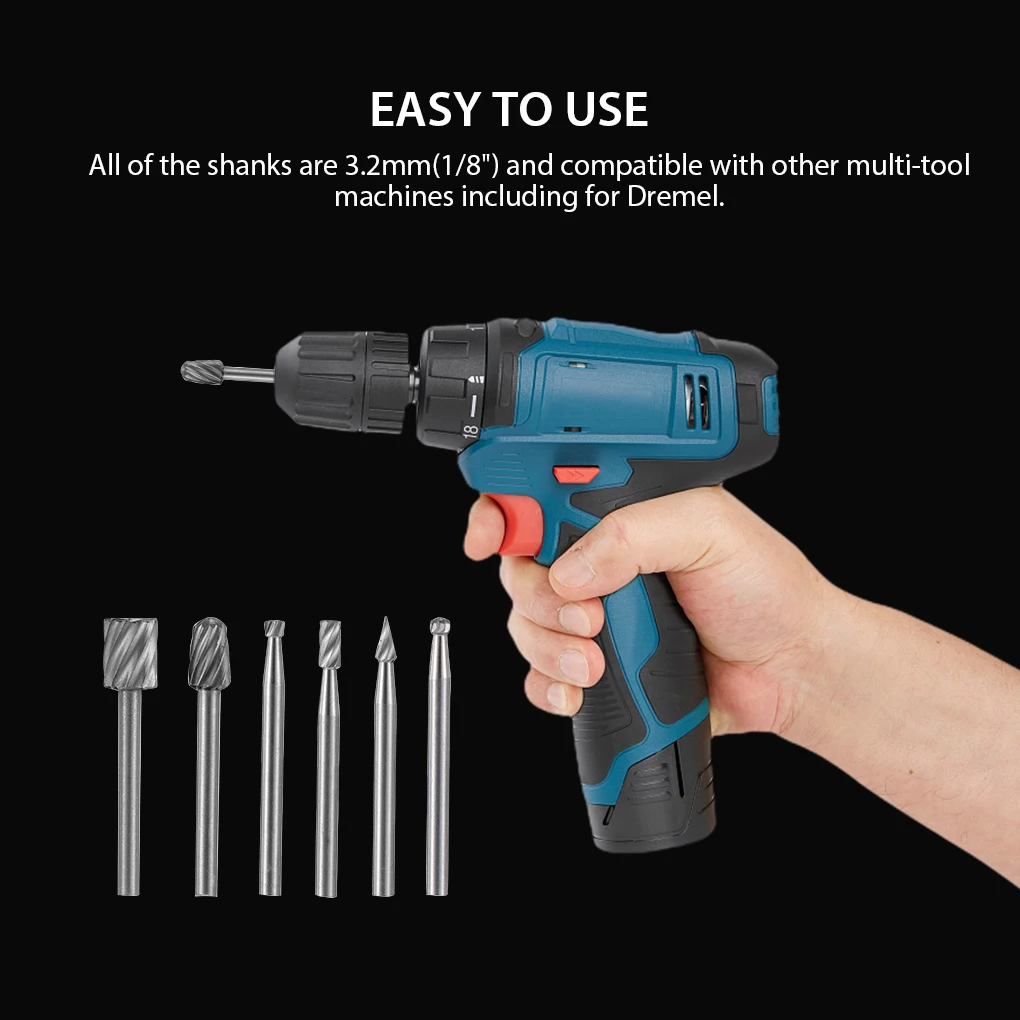 Описание:Все голень, 3,2 мм (1/8 ") и должны быть совместимы с другими мультиинструмент аппараты, в том числе для Dremel.Эти 6 шт HSS вращающиеся заусенцы идеально подходят для всех видов работ, таких как изготовление моделей и тому подобное.С помощью гравировального станка или мини-сверла различные формы режущей части обеспечивают эффективную обработку, длина которого составляет около 40 мм.Для обработки металлических и неметаллических поверхностей, отлично подходит для рукоделия, моделирования airfix, дома, ремонта и т. д.Пожалуйста, проверьте как можно больше, чтобы убедиться, что товар тот, который вам нужен.Спецификация:Тип: HSS роторный заусенец.Цвет: серебристый.Материал: HSS (Высокоскоростная сталь).Диаметр оправы хвостовика: 3,17 мм.Длина: 40 мм.Примечание:Возможно небольшое искажение цвета из-за различных разрешений компьютеров.Там могут быть незначительные ошибки из-за различных размеры руки.Посылка включает в себя:6 * HSS роторные заусенцы.