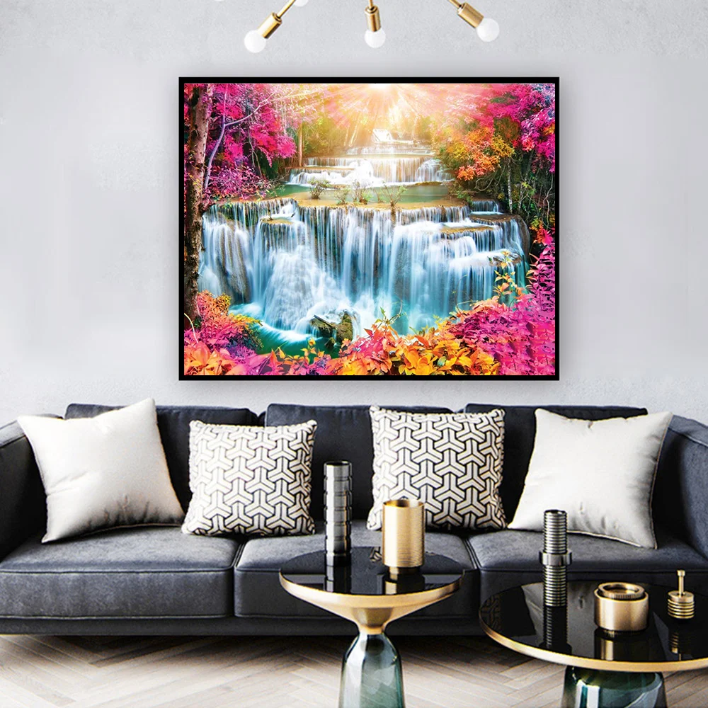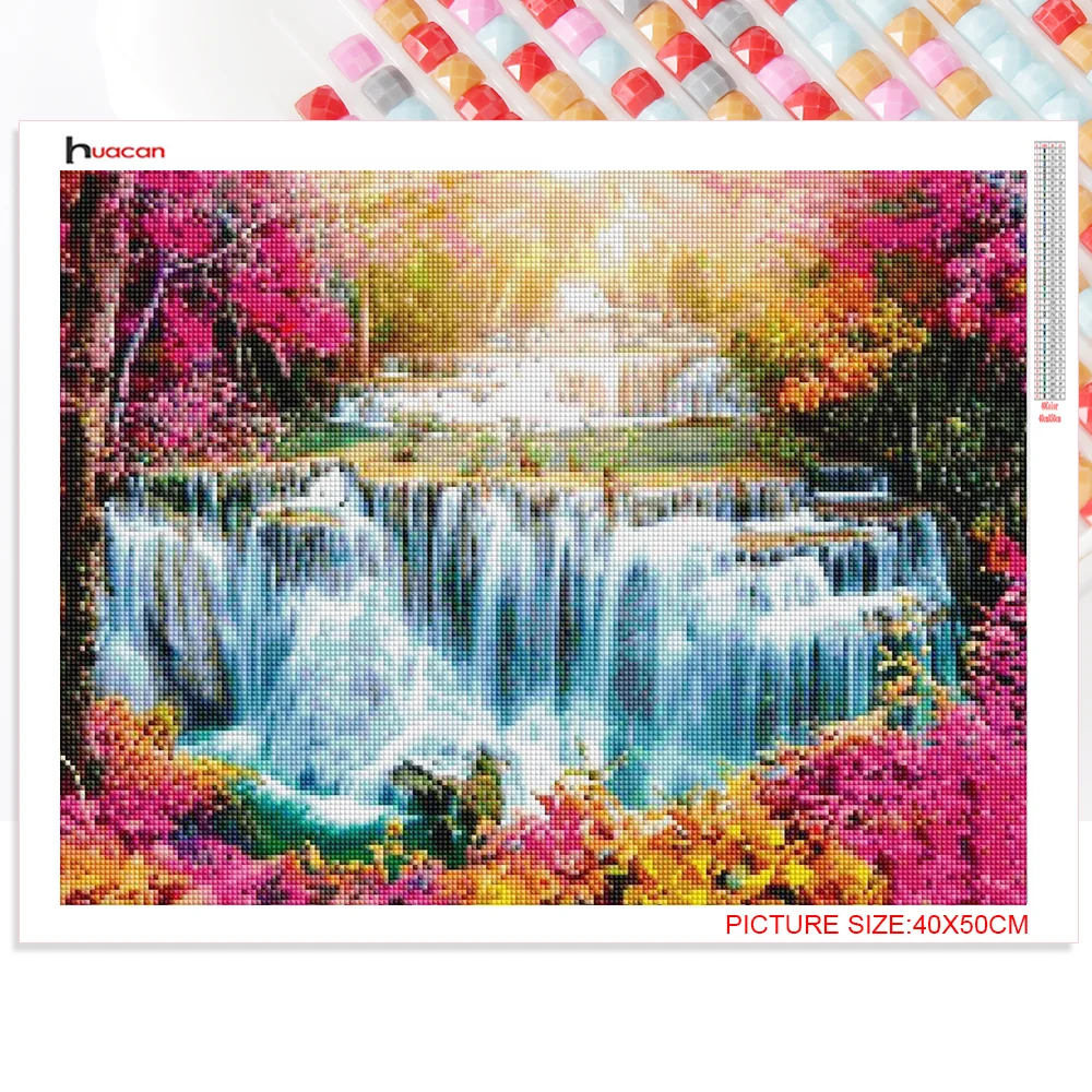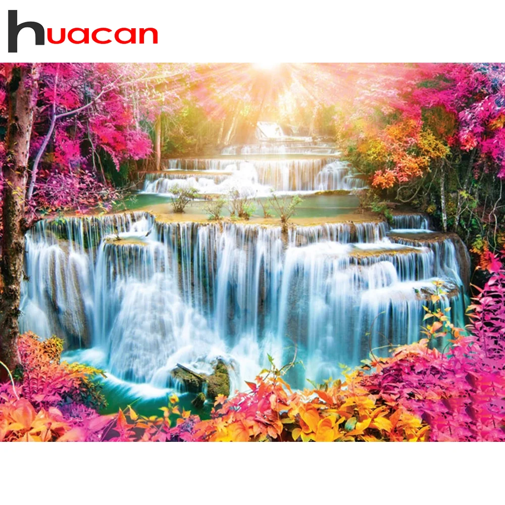 Алмазная 5d картина Huacan, комплекты "Водопад" для творчества, полноразмернаяКруглая Мозаика, вышивка, украшение ландшафта, для дома