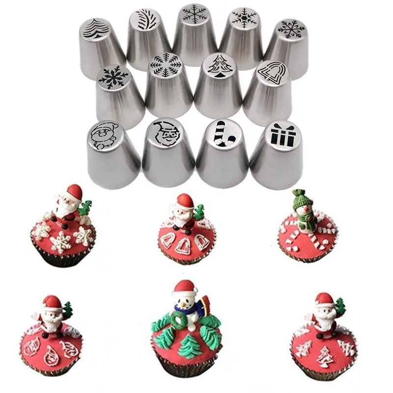 Рождественская серия крем торт глазури трубопроводов сопла из нержавеющей стали русский бесшовный цветочный рот Кухня выпечки Инструменты для декорирования