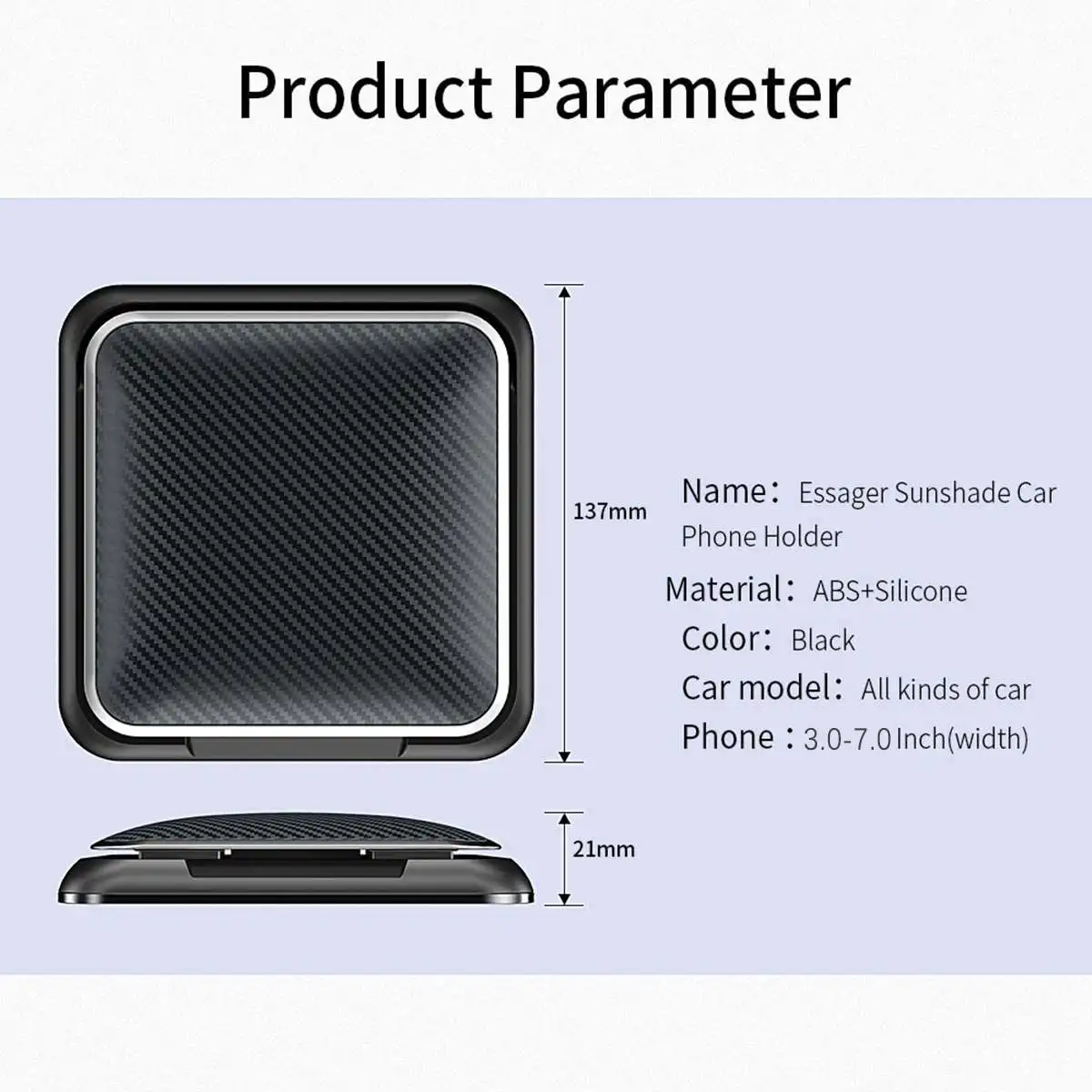 Особенность:-Большая силикагелевая основа, плюс круг клейкой силиконовой пленки можно стирать и использовать повторно.Вогнутая силиконовая основа не скользит и прочно удерживается. Вымойте основание водой, когда хотите переместить его в другой автомобиль, а затем выполните инструкции по установке