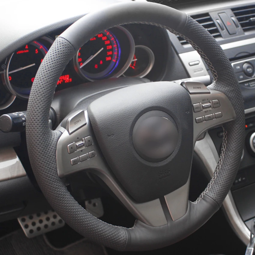 Рука сшитый черный PU Искусственная кожа Чехол рулевого колеса автомобиля для Mazda 6 (GH) 2009 2007 2008 2009 2010 2011 2012