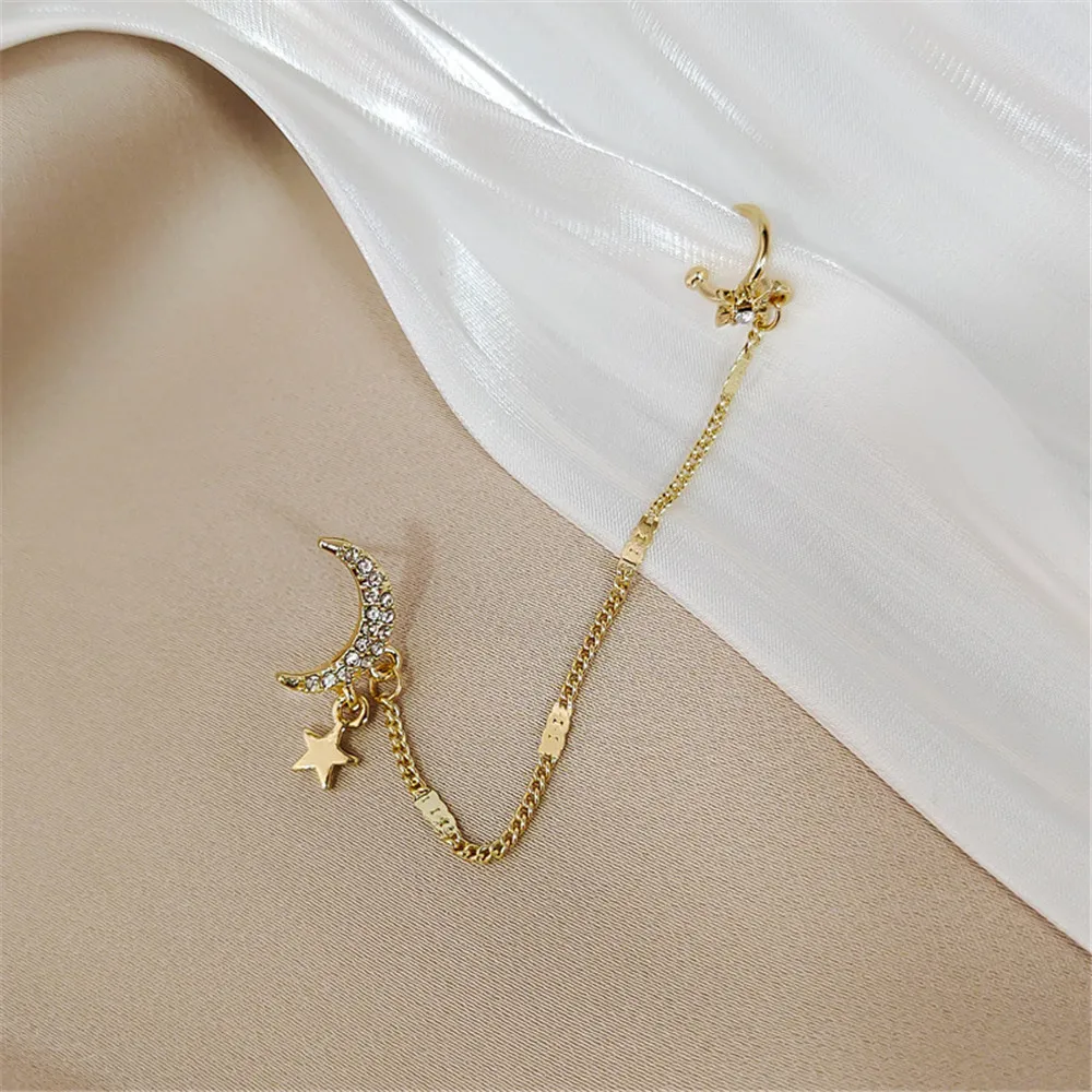 1 шт 2021 Новая мода золотистого цвета Луна Звезда Клипсы Серьги дл...