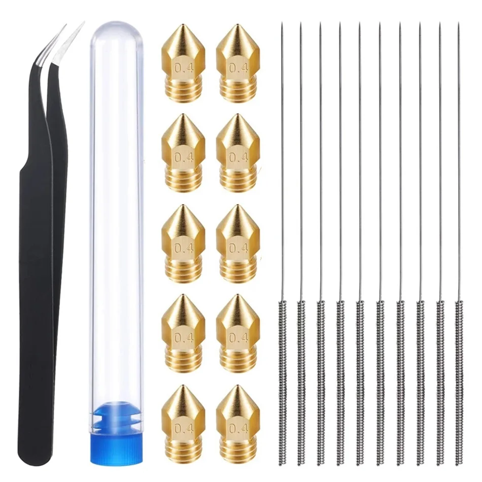 Комплект насадок и чистящих инструментов для 3D-принтера, 0,4 мм, Mk8, 0,4 мм иглы и 1 упаковка пинцетов, комплект насадок из нержавеющей стали, 21 шт.