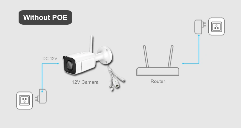 Зафиксируйте камеру с помощью кронштейна, затем подключите ее шнур питания к адаптеру, и установка прошла успешно, когда питание включено.Внимание: при использовании нескольких камер необходимо установить сетевой видеорегистратор.