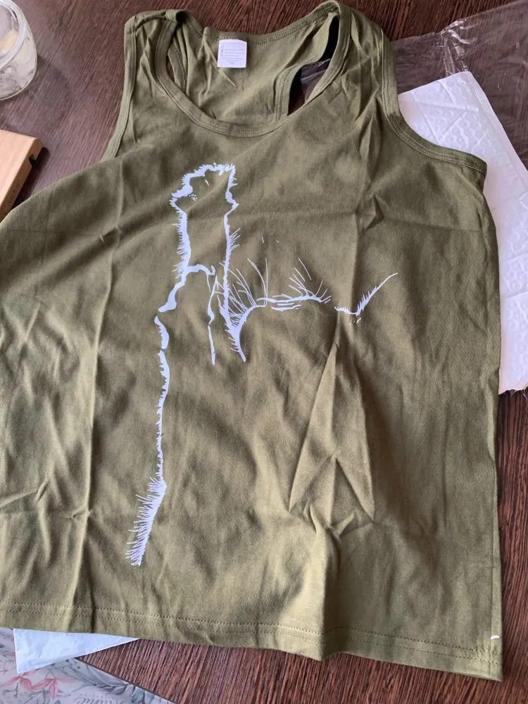 Майка не совсем, как на фото продавца ( на спине-обычная майка), трикотаж плотный. Спасибо продавцу