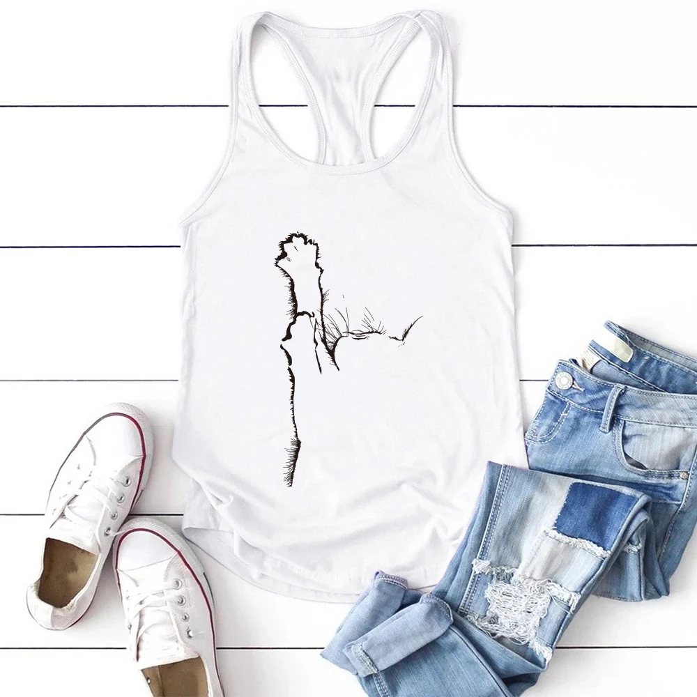 Женский топ без рукавов с забавным принтом кота, летние свободные топы, женская одежда Harajuku, повседневный спортивный жилет для фитнеса, Haut Femme