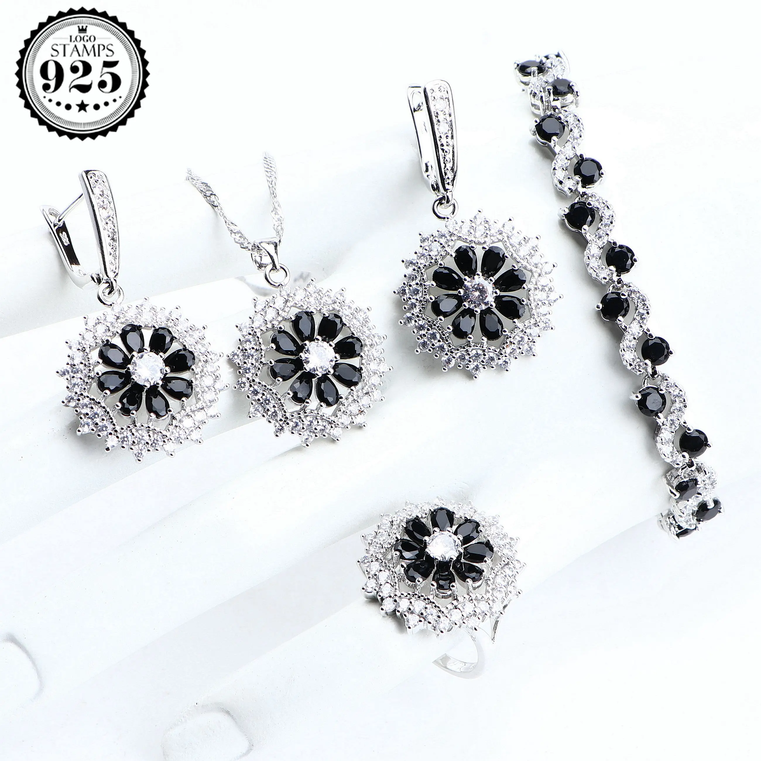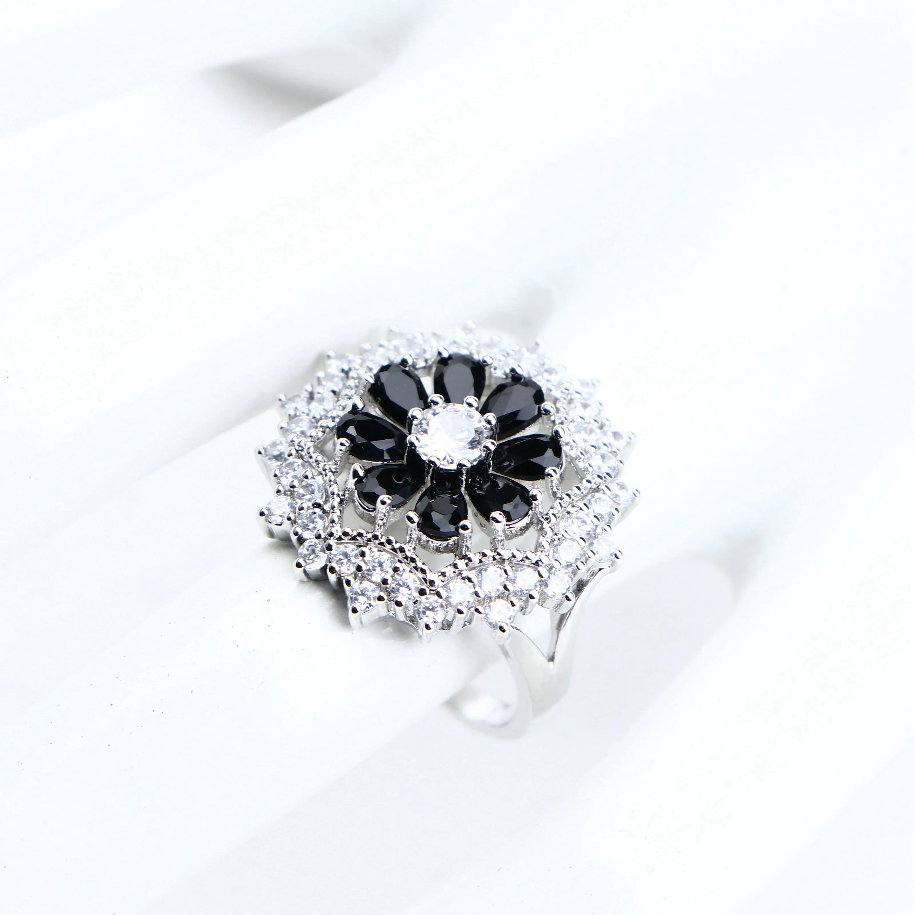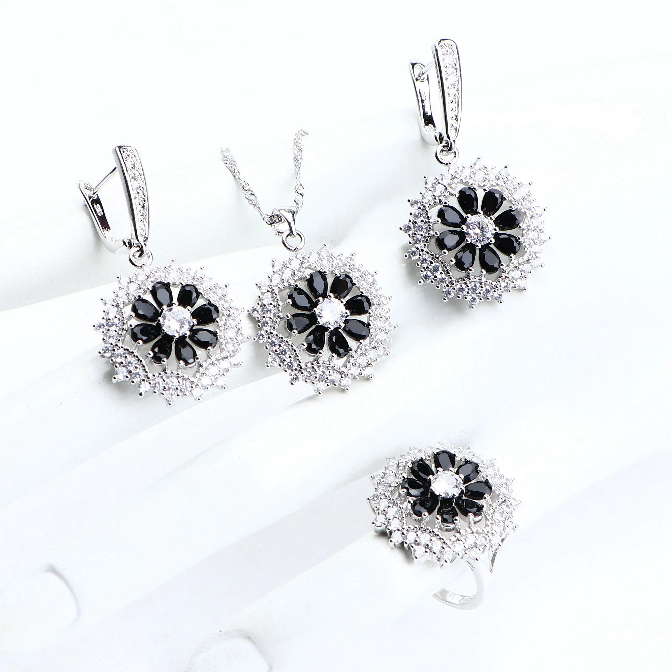 Набор женских ювелирных изделий, кольцо и подвеска из черного фианита, из серебра 925 пробы