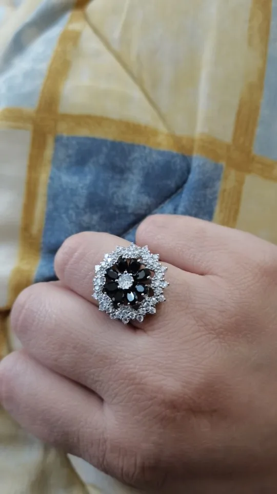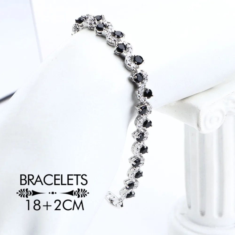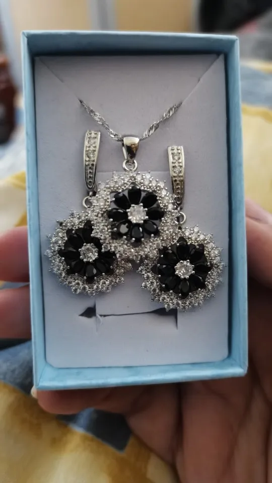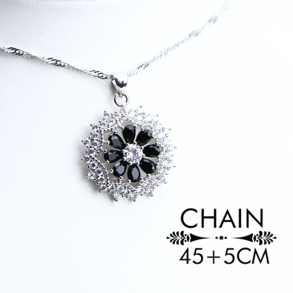 Набор женских ювелирных изделий, кольцо и подвеска из черного фианита, из серебра 925 пробы