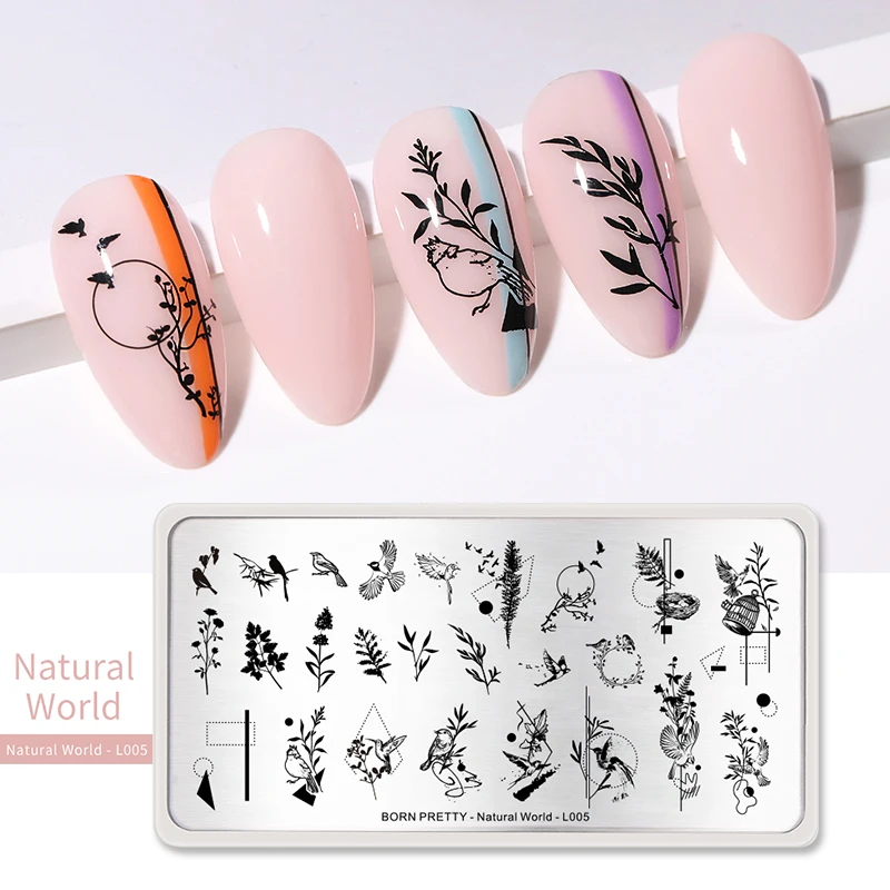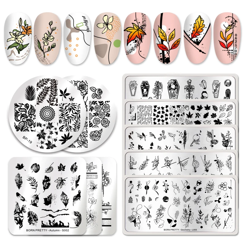 Пластины для стемпинга BORN PRETTY, из нержавеющей стали, с изображением цветов и листьев