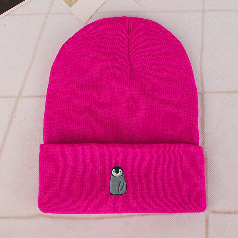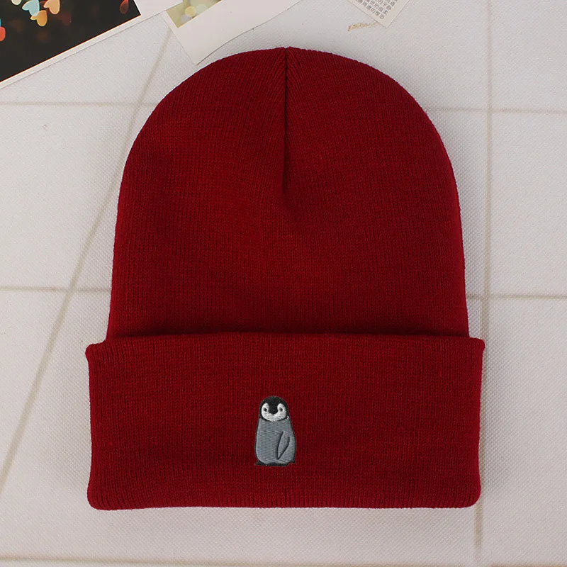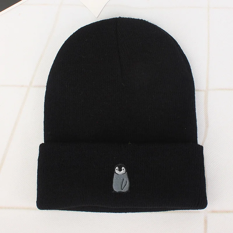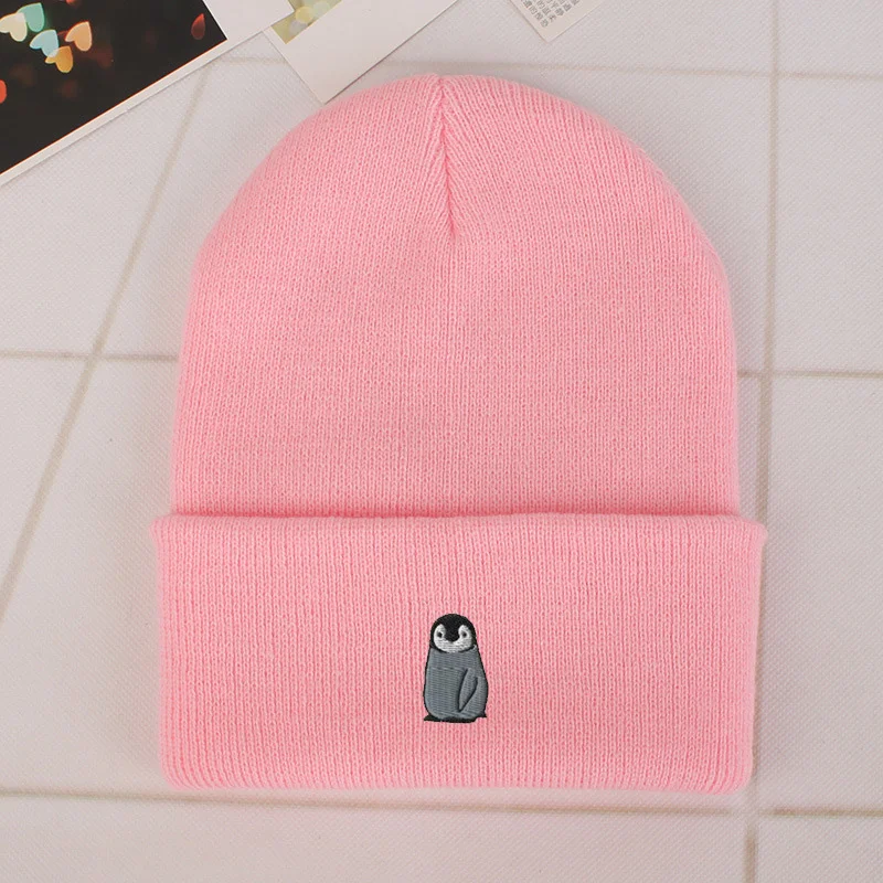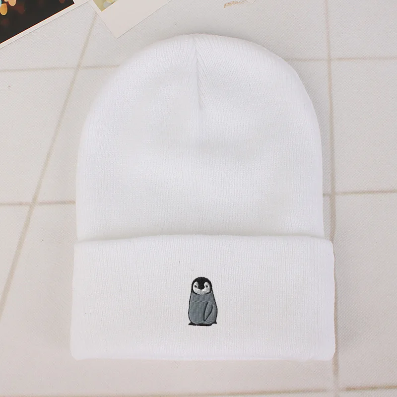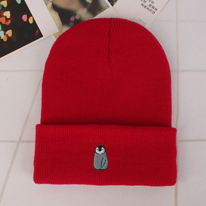 Шапки с вышивкой, мультяшный Пингвин, шапочки, однотонные вязаные шапки, шапка, зимние теплые лыжные шапки, мужские и женские шапки, Мягкие Шапки