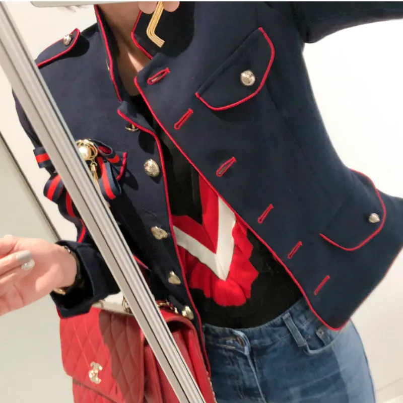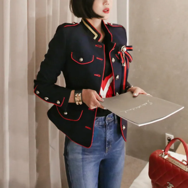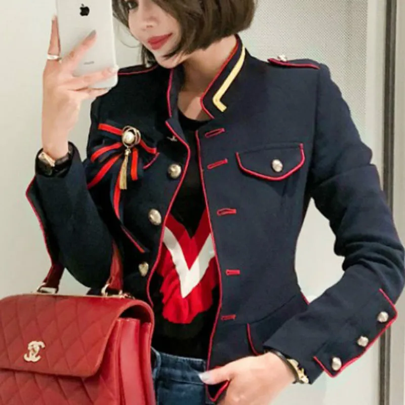 Куртка женская короткая демисезонная, винтажный праздничный пиджак, милая стильная куртка для работы, удобное пальто, темно-синий цвет