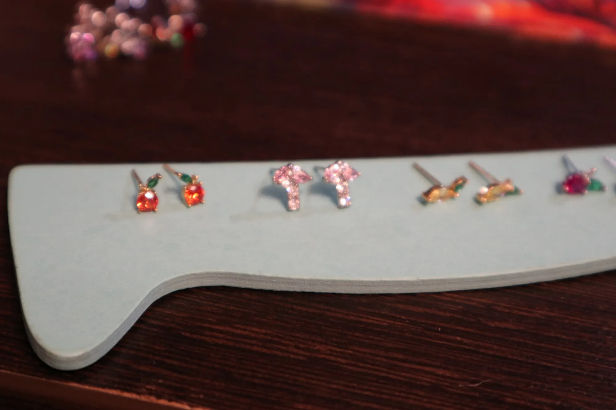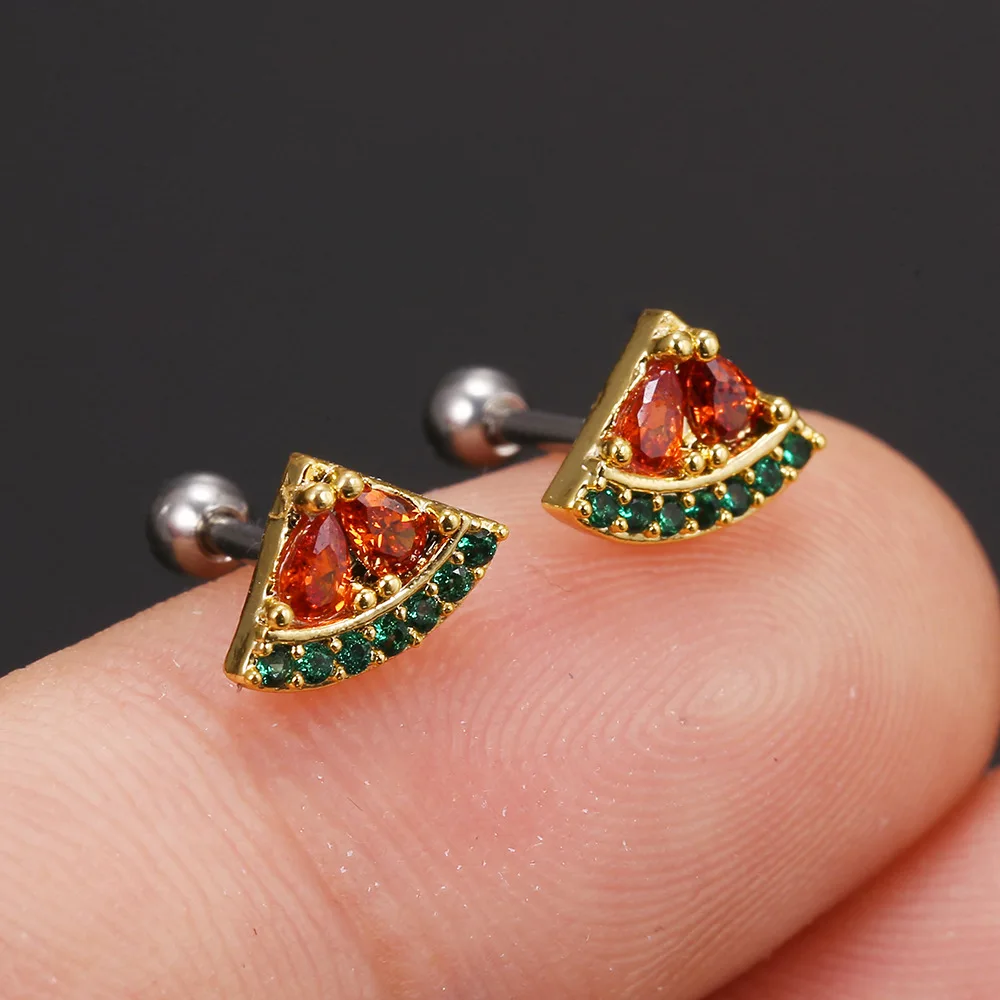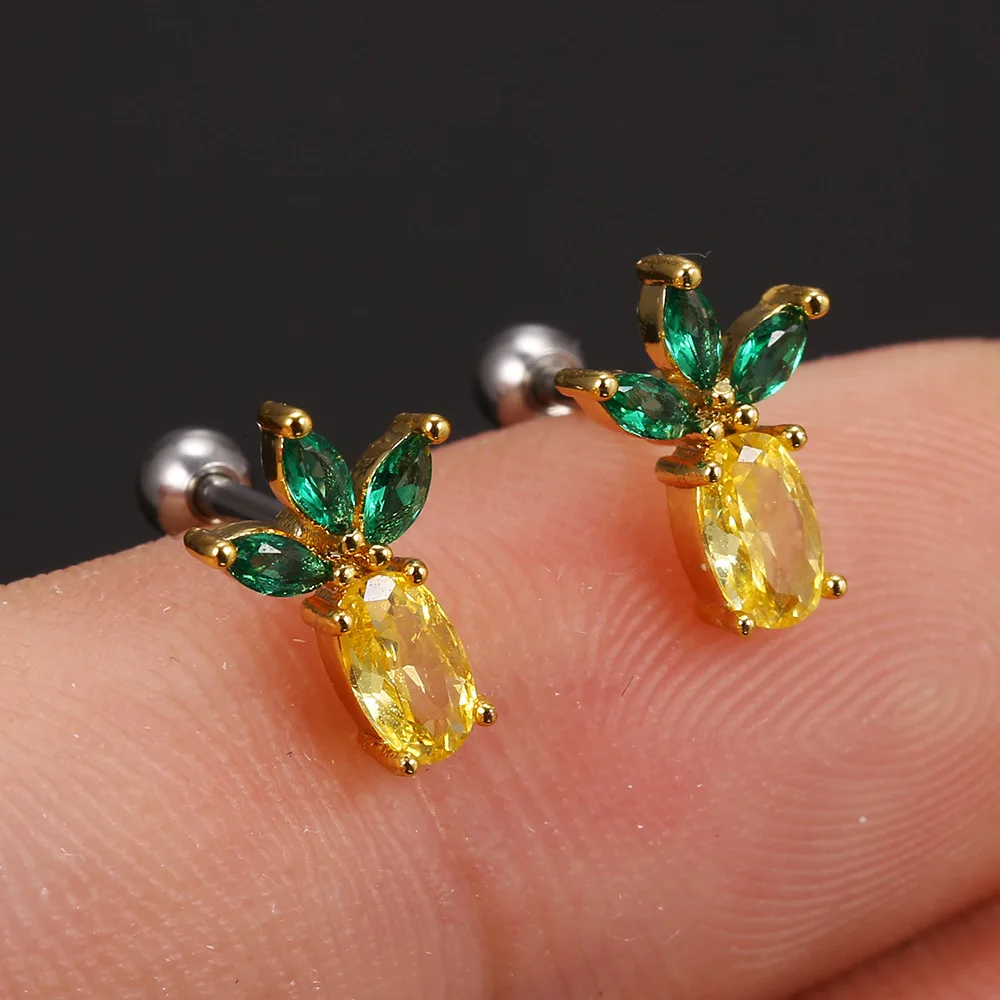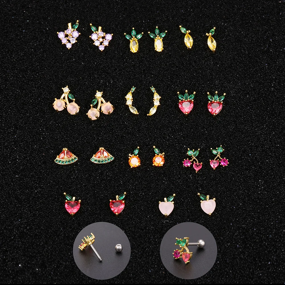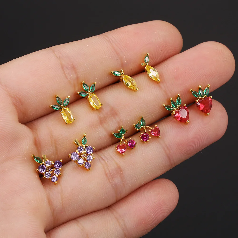 Серьги-гвоздики в виде фруктовой хрящевой ткани женские, Ювелирное Украшение для пирсинга ушной раковины с фианитами, кристаллами банана, яблоки, персики, маленькие серьги-гвоздики, завитка ушной раковины, 1 пара