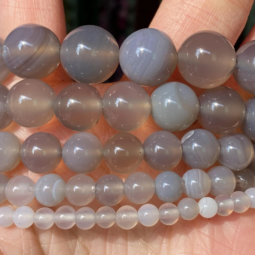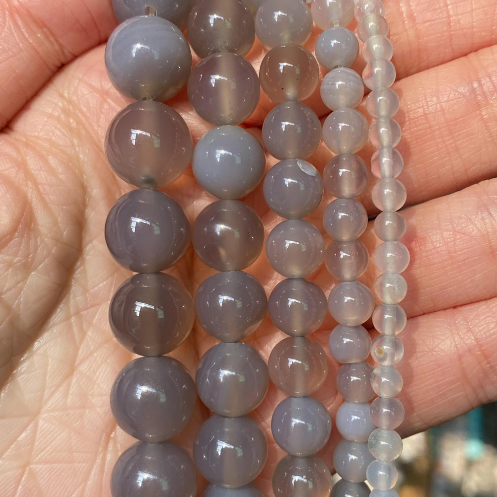 Натуральные серые Бусы из камня Агата, круглые бусины-разделители для изготовления ювелирных изделий, аксессуары для браслетов «сделай сам» 4, 6, 8, 10, 12 мм, 15 дюймов