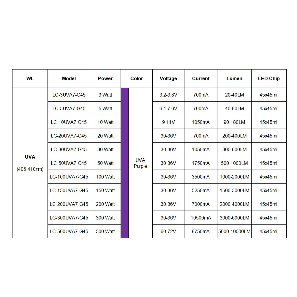 3 Вт, 5 Вт, 10 Вт, 20 Вт, 30 Вт, 50 Вт, 100 Вт, 200 Вт, 300 Вт, 500 Вт, UVA, фиолетовый 405-100 нм, светодиодный COB-чип сделай сам, 10, 50, 300, Вт, ультрафиолетовая лампа