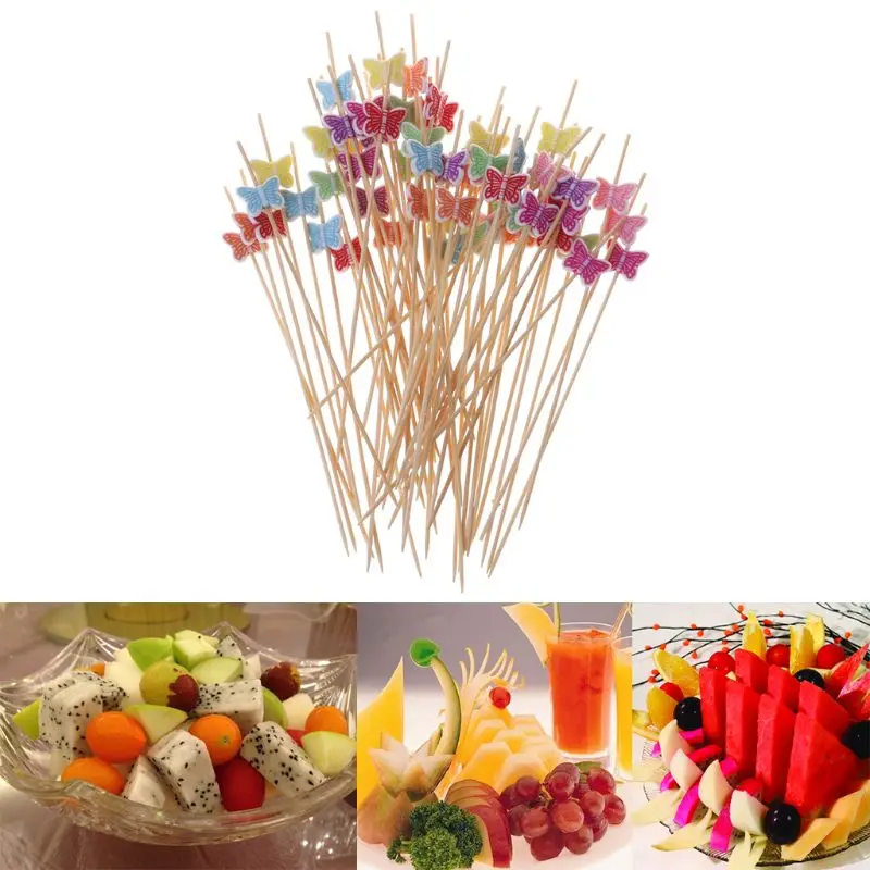 100 шт. 12 см, бант-бабочка Еда выбирает десертов вилка для фруктового салата торт Muffin вечерние растительные палочки коктейль зубочистки