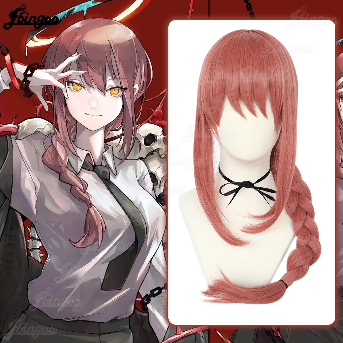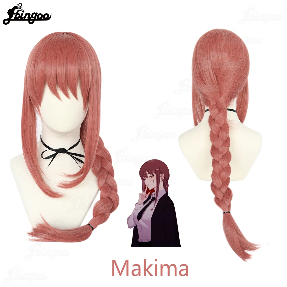 Парик для косплея макима Ebingoo синтетический, длинные плетеные волосы из аниме макима, с цепью, для костюмированной вечеринки на Хэллоуин